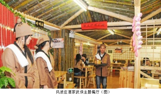[摘要] 昆陽鎮萬聯路有一家“武俠餐廳”,餐廳名叫“風波莊酒家”,從裝修、菜單、店員裝束甚至店員,對客人的稱呼都充滿了武俠氣息。開業一個多星期,這家餐廳吸引了不少顧客。
