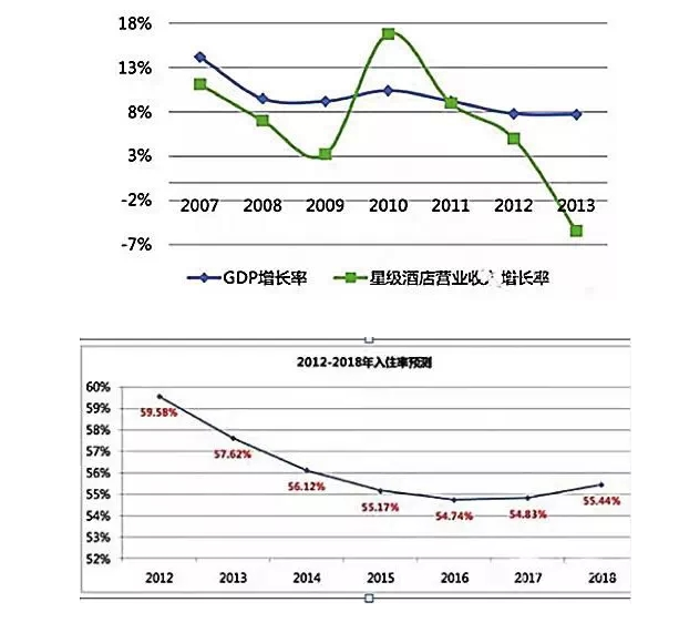為什么會(huì)出現(xiàn)這種狀況?高星級(jí)酒店前幾年來(lái)的超高速擴(kuò)容或是罪魁禍?zhǔn)住?shù)據(jù)顯示,2006年到2010年,中國(guó)的國(guó)內(nèi)生產(chǎn)總值GDP的增幅年均11.7%,但酒店業(yè)發(fā)展速度遠(yuǎn)超于此,僅星級(jí)酒店擴(kuò)容年均12%,其中高端酒店年均17%,經(jīng)濟(jì)型酒店年均49.8%。