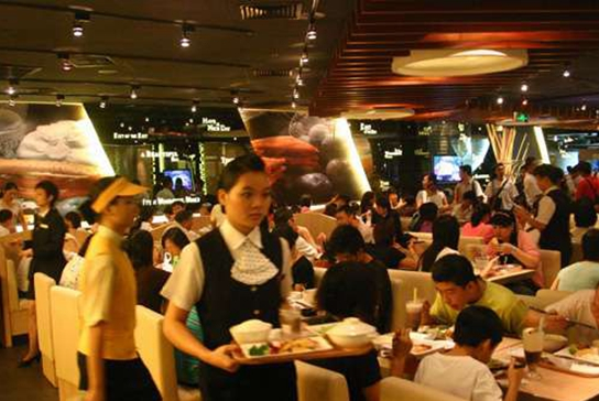 同樣,格調(diào)也是休閑餐飲的一大亮點(diǎn)。快餐講究快捷便利,環(huán)境要求干凈衛(wèi)生、明亮熱烈,正餐講究的是一種餐飲文化、特色以及主題,所以其裝修比較個(gè)性化,強(qiáng)調(diào)就餐環(huán)境的獨(dú)特性、差異性。而休閑餐飲既要做到比快餐更有個(gè)性、更休閑,但又符合快餐的標(biāo)準(zhǔn)化,可以大規(guī)模復(fù)制又不雷同。