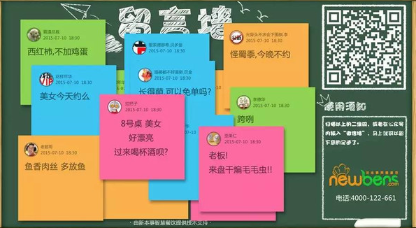 微信已經成為生活一部分的今天,微信留言墻的價值就不言而喻,運用新本事智慧餐飲系統在顧客進店掃描二維碼的同時,必定會關注餐廳的微信公眾號,而留言墻功能的實現,只需要微信平臺就能操作完成,能讓餐廳微信賬號在線下活動中進行互動娛樂,同時快速為官方微信增漲粉絲,同時也保證了粉絲的質量。