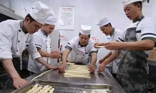 “鐺鐺……”清晨4時(shí),鬧鈴響過(guò)后,司務(wù)長(zhǎng)丁紅從床上彈了起來(lái),他邊穿衣服邊喊著“起床”的口令。炊事班的一天就這樣開始了,有的同志整理內(nèi)務(wù),有的同志“占領(lǐng)”廁所,有的同志搶占洗漱臺(tái)。4時(shí)15分,準(zhǔn)時(shí)開火,炊事操作間內(nèi),8名穿著炊事服的身影開始忙起來(lái)。