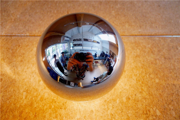 軟木墻一側的電鍍鎢絲燈,可以保護對面咖啡師的雙眼不被光照直接影響,另一方面成為趣味的拍攝區,貼著球面按下快門就可以囊括店鋪全景。