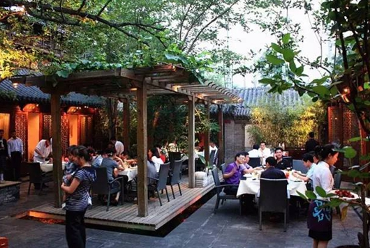 所以,花家怡園保留了北京傳統的四合院建筑,大紅色的柱子,藍色門頭金字招牌。走進去,縱深百米的四合院餐廳游廊環繞、竹子青青,標準的老北京味道。